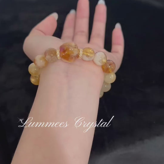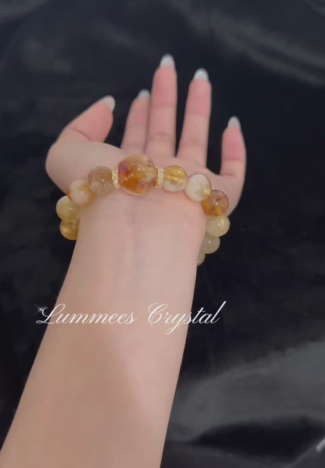 Radiant yellow citrine towers shine with the energy of captured sunlight, bringing warmth and vitality. Golden rutilated quartz, with its shimmering strands of gold, symbolizes the flow of wealth and opportunity. The soft, honeyed glow of amber adds balance and gentle protection. Together, they create a harmonious symphony of abundance and prosperity, inspiring success and attracting fortune. Wearing this bracelet feels like carrying a golden blessing—an energy of confidence, growth, and opportunity at every step.